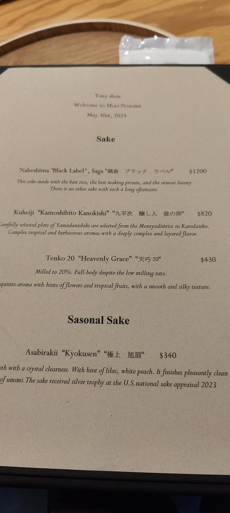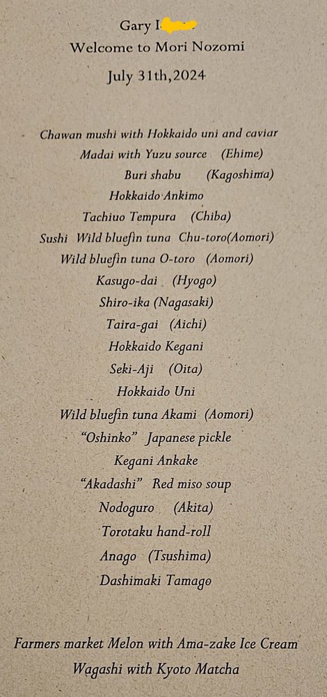 Welcome to Mori Nozomi, a culinary gem nestled in Los Angeles offering an exquisite omakase experience. The menu showcases a stunning array of artisanal sushi and sashimi, featuring premium selections like Blue Fin Toro and Sweet Shrimp, each piece embodying exceptional quality and freshness. Noteworthy highlights include the Tempura Lunch Special, combining crispy tempura shrimp and vegetables with perfectly steamed rice for just $15, making it a delightful midday indulgence.